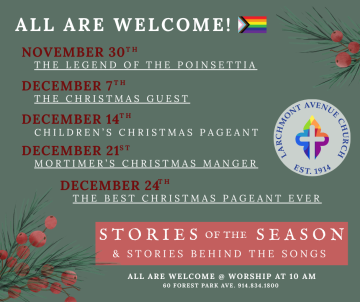 Larchmont Avenue Church is located at the intersection of Larchmont and Forest Park Avenues. Ample parking is available on Sundays either on Larchmont Avenue (with diagonal parking permitted on Sundays) or Forest Park Avenue. For week day visitors, please be sure to read the Village of Larchmont parking restriction signs carefully as parking availability is subject to weekday restrictions related to school hours.